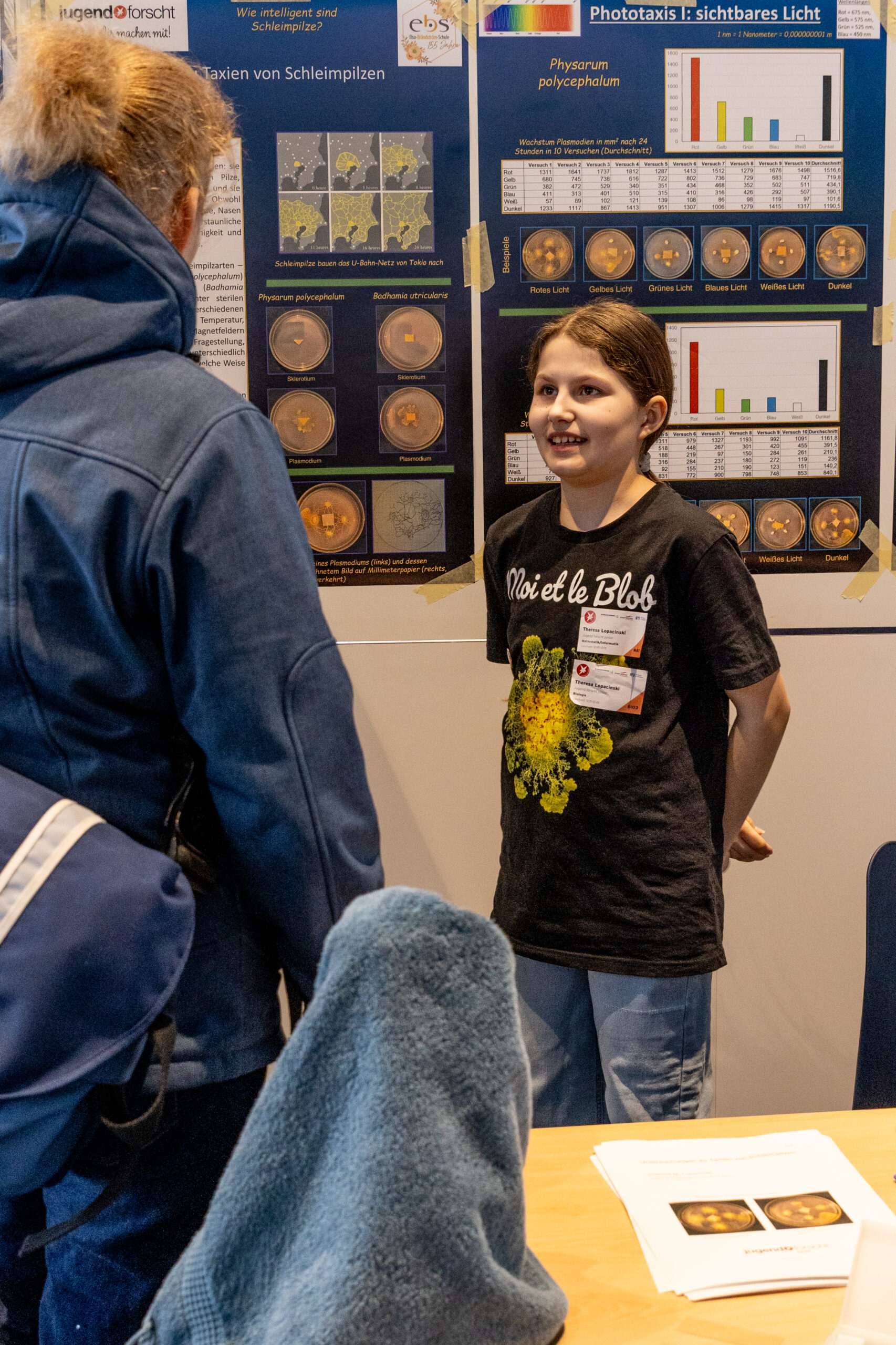 Eine herausragende Leistung zeigte die zwölfjährige Theresa Lopacinski von der Elsa-Brändström-Schule in Elmshorn. Sie sicherte sich sensationelles Doppel-Gold in der Sparte „Jugend forscht junior“. Sowohl in Biologie als auch in Mathematik/Informatik belegte sie mit ihren Forschungen an Schleimpilzen den ersten Platz. Sie bewies unter anderem, dass die einzelligen Organismen hochkomplexe mathematische „Steinerbaum-Probleme“ bei der Suche nach dem kürzesten Weg zur Nahrung intuitiv lösen können.