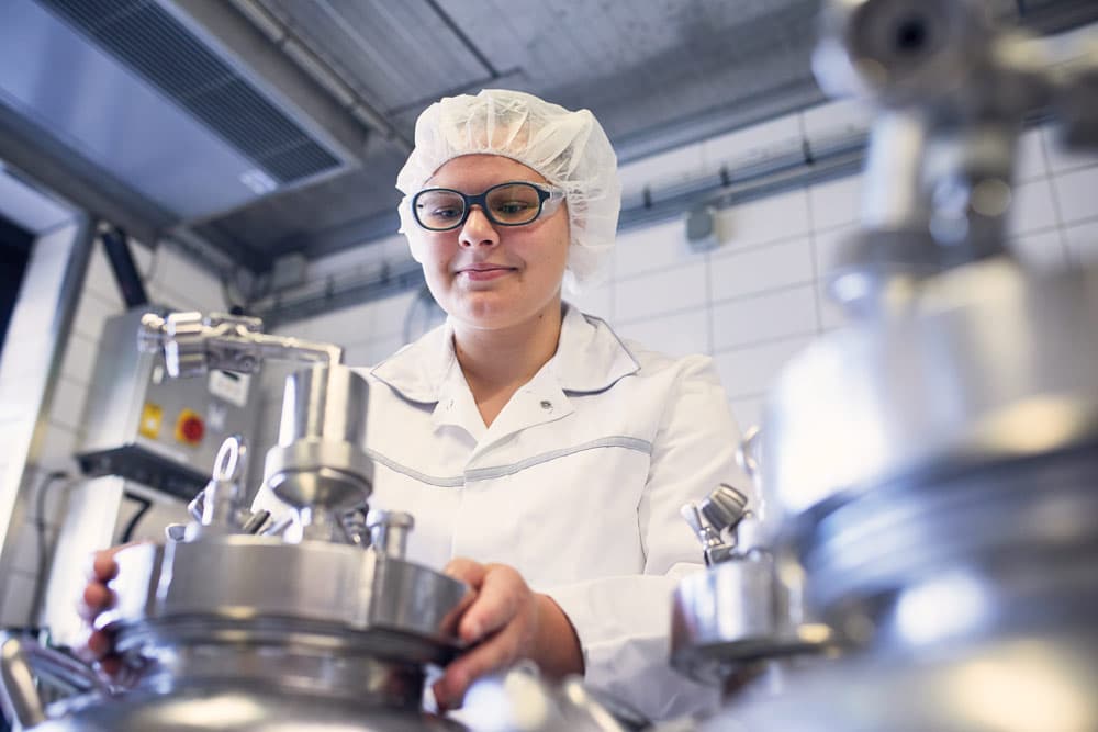 Da ein einzelnes Milchsäurebakterium noch lange keinen Joghurt macht, müssen die Kulturen um ein Vielfaches vermehrt werden. Das passiert in der modernen Produktionsanlage von Danisco, dem Arbeitsplatz von Levke. In ihrer Ausbildung zur Milchtechnologin sorgt sie bei der Vermehrung der Bakterienkulturen für einen störungsfreien Produktionsablauf.