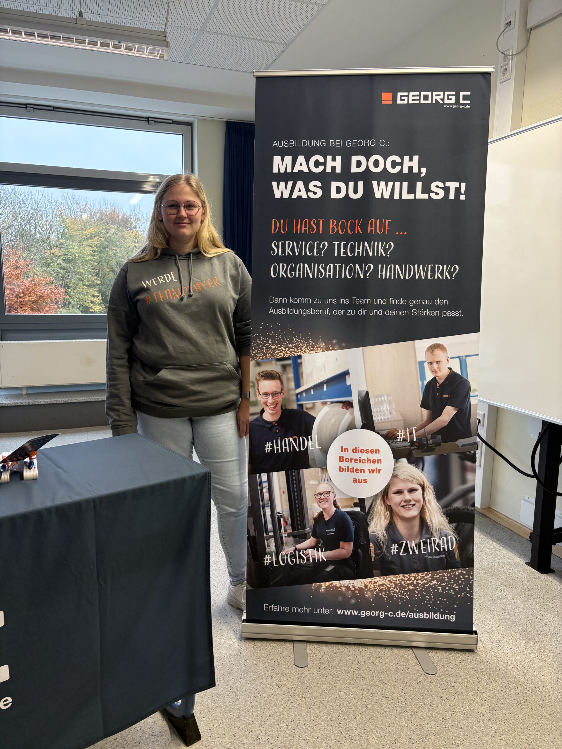 Ein weiteres Unternehmen aus der Region, das sich bei der Ausbildungsmesse der FTS Husum präsentierte, war GEORG C., ein Großhändler für die Bereiche Handwerk und Industrie. Der Betrieb mit fünf Standorten im Norden bietet vielfältige Ausbildungsmöglichkeiten, unter anderem in der Lagerlogistik, im Einzelhandel und in der Fachinformatik. Lina Jürgensen, Auszubildende im Groß- und Außenhandelsmanagement, gefällt vor allem „die Vielfalt der Aufgaben, der Kontakt zu Menschen und das Lösen von Problemen“. Außerdem bereiten der 23-Jährigen Ausstellungen viel Freude, weil „man da zum Beispiel sieht, wie ein Traumbad Schritt für Schritt entsteht“.